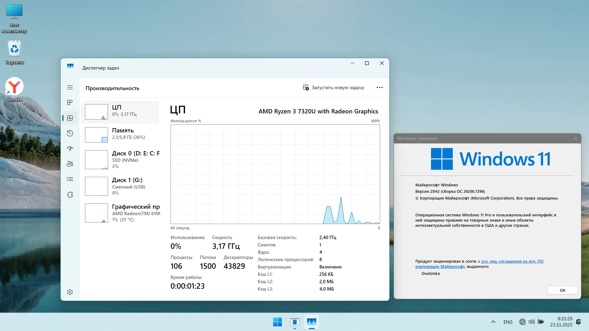 Сборка Windows 11 на основе новейшего билда от 18 ноября 2025 года. Использован установщик от Флибустьера, позволяющий настроить операционную систему под себя. Изначально из образа удалены все приложения и телеметрия.Системные требования: