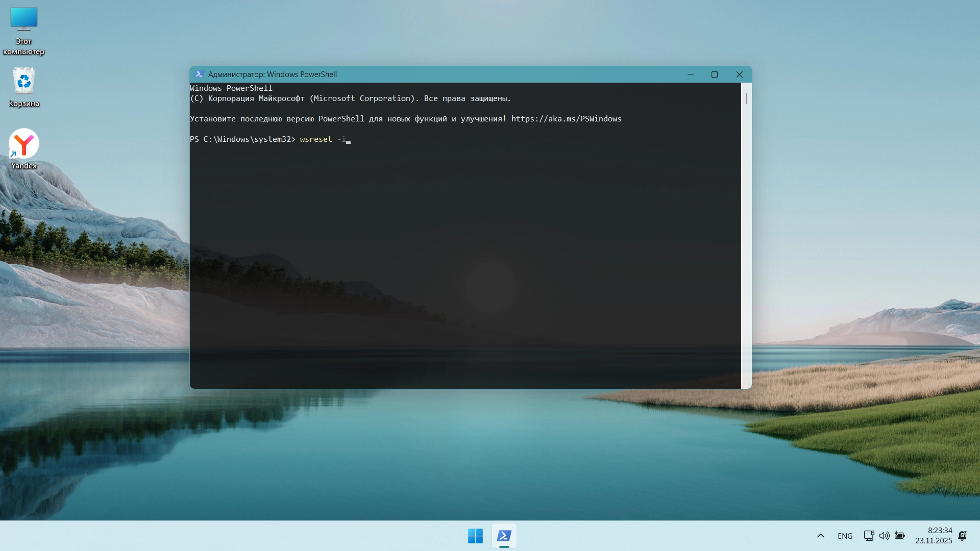 При включенном интернете в PowerShell от имени администратора вводим команду